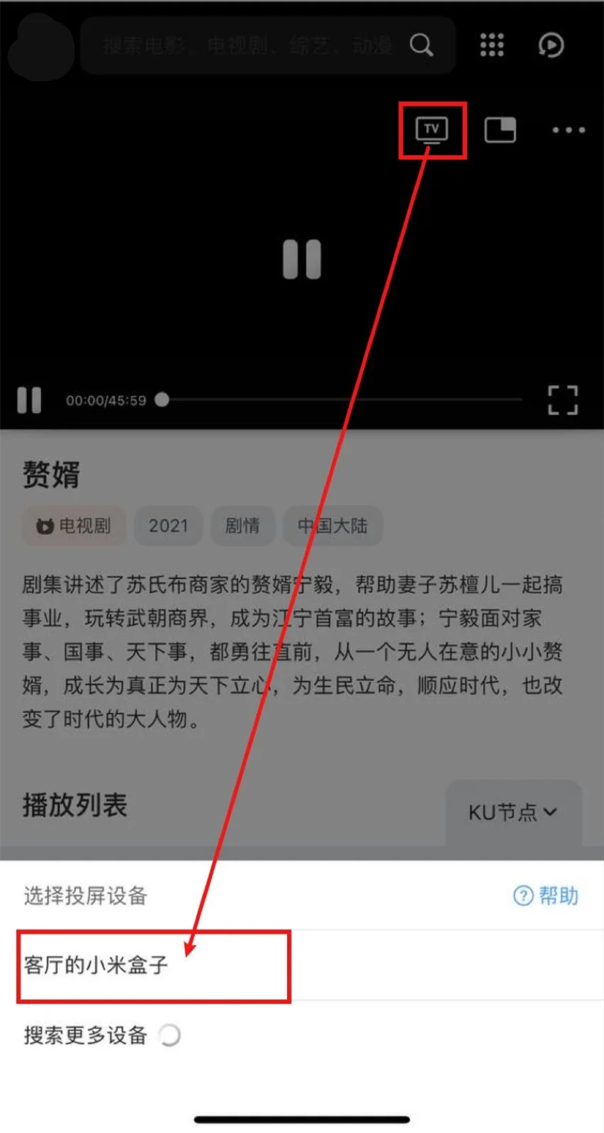 打开QQ浏览器(会接管网页播放器)->打开69AV房 - AV解说视频大全| 最新日本无码素人AV免费在线看->播放视频->选中投屏图标->等待搜寻出智能电视/电视盒子->选中,即可投屏。